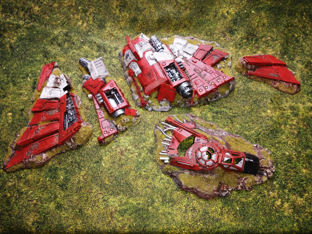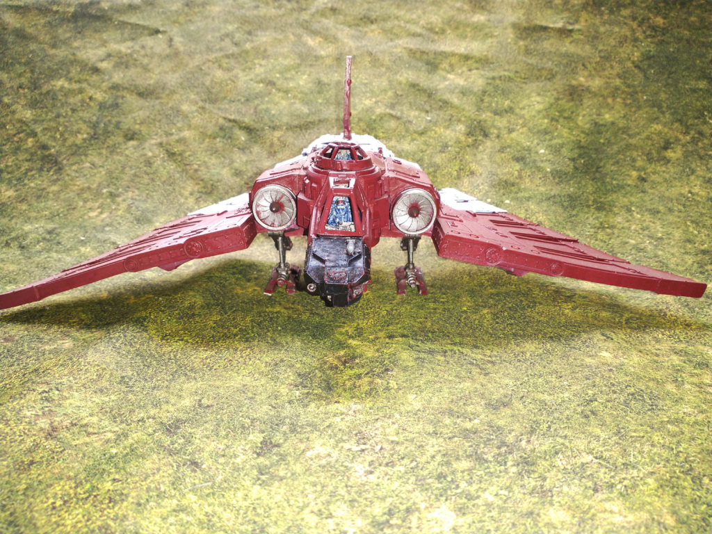 I was fortunate enough to get one, and while it has seen somewhat better days (I really need to re-level the wings) I’m still very happy I have this unique flyer, which I painted in Inquisitor/AdMech red, taking cues from the United States Coast Guard scheme for their helicopters. As with most FW kits, there is no cockpit glass, and I did not install any. Something I might retrofit. Maybe. Someday.